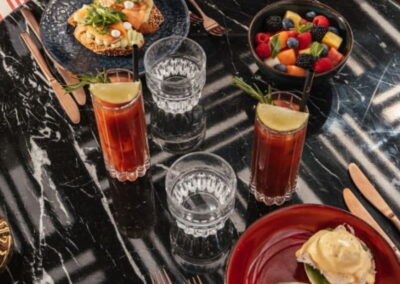 - Selección de platos principales: huevos benedictinos, tostadas gourmet, pancakes o bowls saludables.