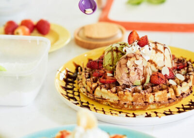 - Degustación de waffles artesanales con diferentes toppings.
