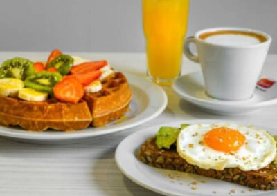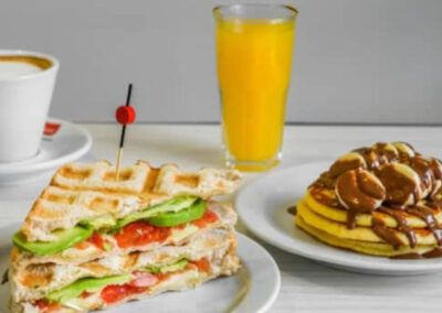 Descubre un Brunch waffle Barcelona único en un espacio moderno y acogedor, ideal para disfrutar solo, en pareja o con amigos. Empieza el día con una selección de bebidas calientes y frías, acompañadas de propuestas saladas y dulces que combinan lo mejor de la cocina internacional con un toque creativo. La estrella de la experiencia son los waffles artesanales, preparados con diferentes toppings para todos los gustos, desde opciones clásicas hasta combinaciones más sorprendentes. Una experiencia gastronómica perfecta para los amantes del brunch en Barcelona que buscan algo especial.