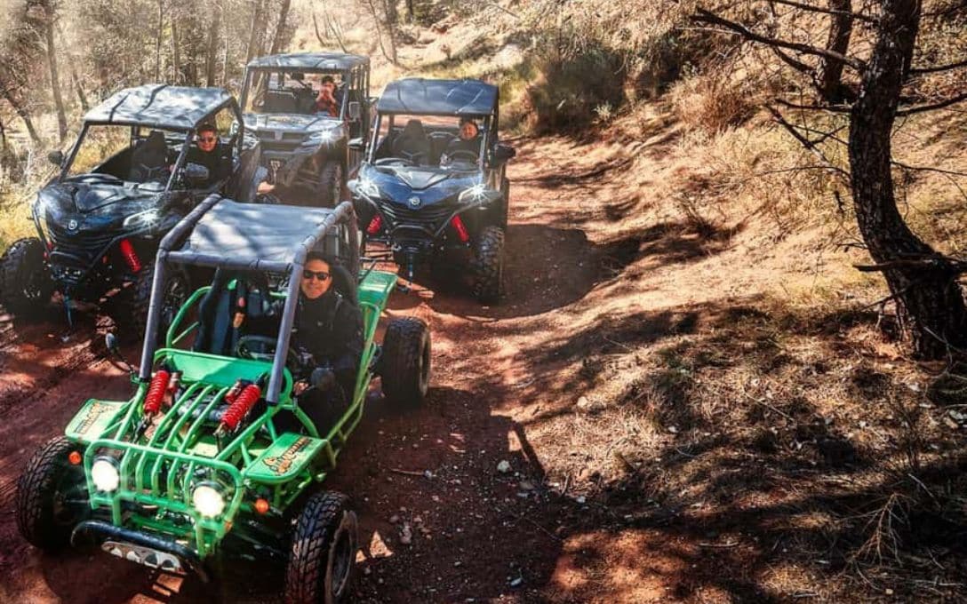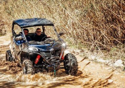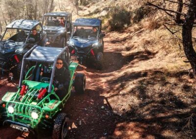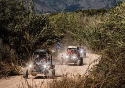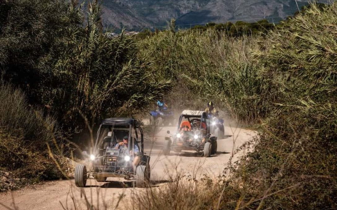 Emprende un emocionante recorrido en Buggy en Benidorm desde Albir por la Costa Blanca y vive una experiencia llena de adrenalina mientras conquistas terrenos desafiantes y senderos sinuosos durante 1, 2 o 3 horas aproximado. Guiado por un experto local, en alemán, español o inglés, disfrutarás de impresionantes vistas del paisaje urbano de Benidorm, el mar y la playa del Albir, mientras te sumerges en una aventura todoterreno inolvidable. La excursión combina la emoción de la conducción con la belleza natural de la región, capturando cada momento con la cámara de tu guía para que te lleves recuerdos duraderos.