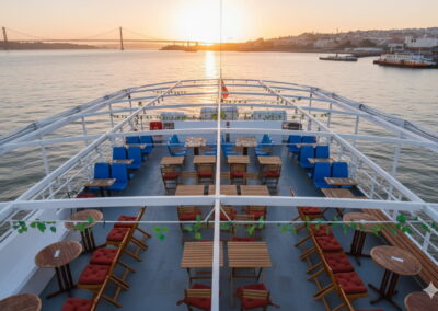 Vive la noche de Lisboa de una forma verdaderamente diferente e inolvidable. Embárcate en un elegante crucero por el río Tajo a bordo de una embarcación de gran capacidad, donde la ciudad se revela bajo un nuevo brillo. Es el escenario perfecto para una noche especial, disfrutando de un ambiente compartido y festivo con música en directo.