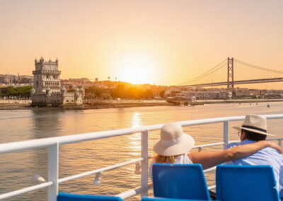 - Vistas panorámicas: Navega junto a la Torre de Belém, el Monumento a los Descubrimientos y el Puente 25 de Abril iluminados.