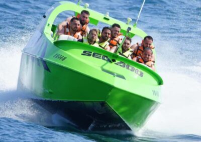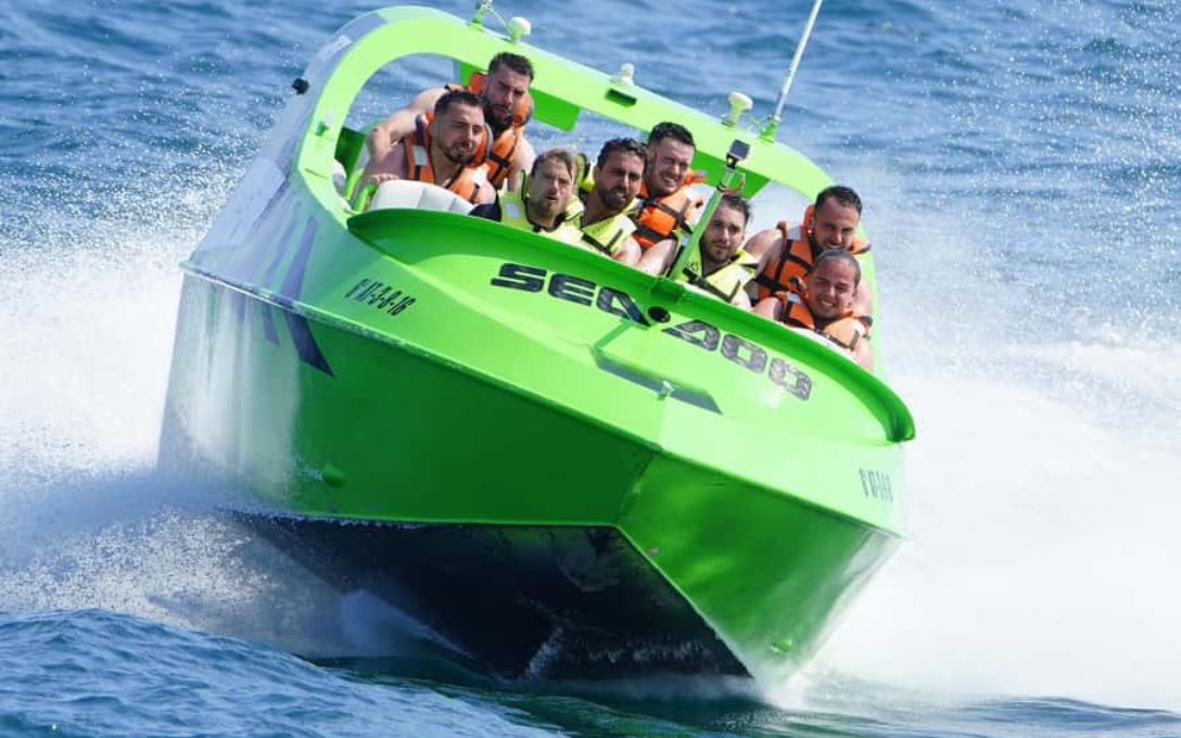 ¡Prepárate para vivir una descarga de adrenalina con el Jet boat Barcelona! Súbete a una lancha rápida de última generación y surca las olas del Mediterráneo en una experiencia llena de velocidad, giros imposibles y emoción pura. Durante 15 intensos minutos, disfrutarás de maniobras extremas como giros de 360º, derrapes, todo mientras contemplas la espectacular costa de Barcelona desde el mar.