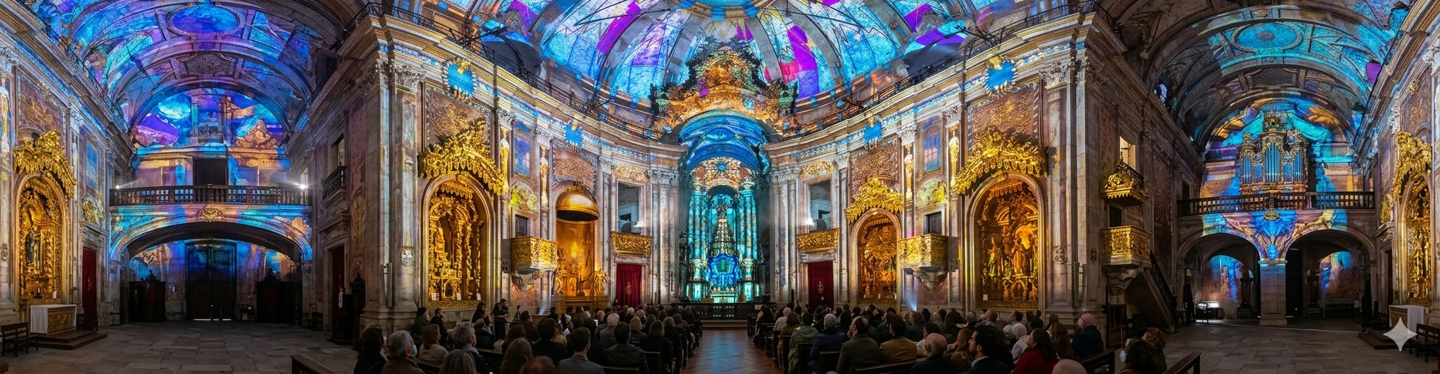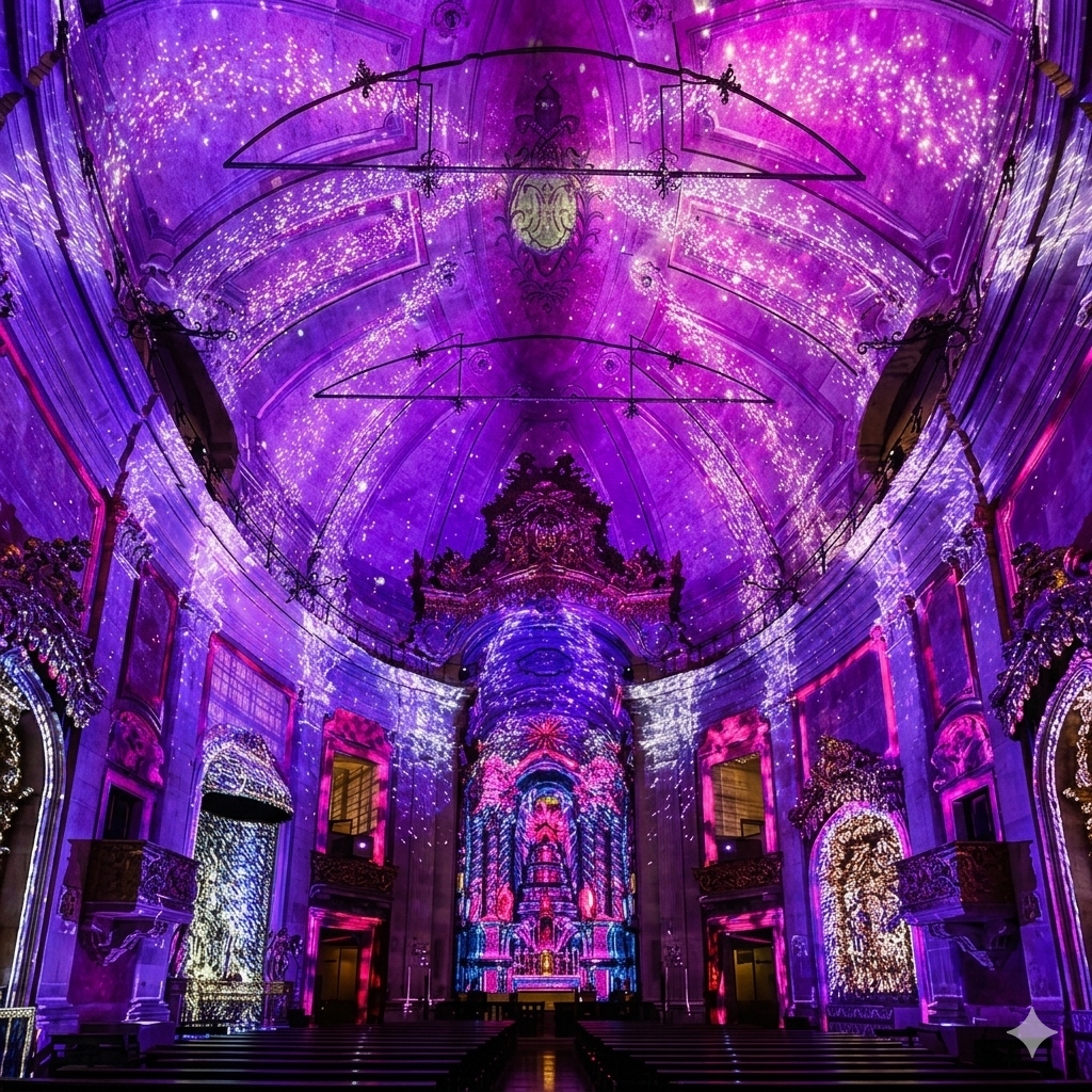 Descubre una experiencia única con spiritus espectáculo multimedia en Oporto, un espectáculo audiovisual inmersivo que transforma uno de los monumentos más emblemáticos de la ciudad. En el interior de esta impresionante iglesia barroca del siglo XVIII, la arquitectura histórica se convierte en un escenario mágico donde luz, música y proyecciones visuales crean un ambiente fascinante durante 30 minutos.
