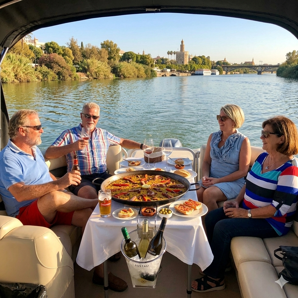 Descubre Sevilla desde una perspectiva única con un Tour privado en barco por Sevilla con paella y bebidas mientras navegas por el histórico río Guadalquivir. Disfrutarás de una experiencia exclusiva en un barco cómodo y privado mientras contemplas los monumentos más emblemáticos de la ciudad desde el agua, lejos del bullicio turístico.